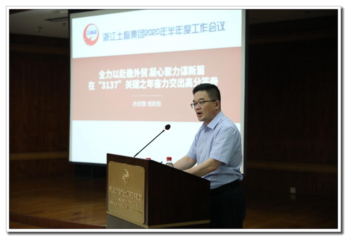 公司黨委副書記、總經(jīng)理?xiàng)钴S勝在題為《全力以赴穩(wěn)外貿(mào) 凝心聚力謀新篇 在“3137”關(guān)鍵之年奮力交出高分答卷》的報(bào)告中指出,上半年,公司堅(jiān)決貫徹集團(tuán)決策部署,統(tǒng)籌推進(jìn)疫情防控和復(fù)工達(dá)產(chǎn),穩(wěn)外貿(mào)、拓內(nèi)貿(mào)、抓風(fēng)控、強(qiáng)管理、強(qiáng)黨建,以“兩戰(zhàn)贏”為目標(biāo),踐行“爭先創(chuàng)優(yōu)”,有效應(yīng)對(duì)了全球疫情沖擊。他強(qiáng)調(diào),開展下半年工作,要以國貿(mào)集團(tuán)半年度工作會(huì)議精神為指引,牢牢抓住集團(tuán)領(lǐng)導(dǎo)提出的“八個(gè)更加注重、八個(gè)走在前列”、“全力交出‘經(jīng)濟(jì)、改革、發(fā)展、治理、安全、黨建’六張高分報(bào)表”總體要求,加快構(gòu)建國際國內(nèi)雙循環(huán),為集團(tuán)奮進(jìn)3137、為全省“重要窗口”建設(shè)作出更多貢獻(xiàn)。