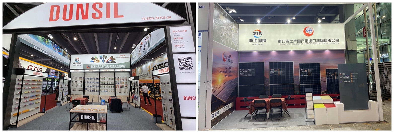 本屆廣交會浙江土畜共組織142個展位,160余名業(yè)務(wù)員參展,占浙江省交易團國貿(mào)分團近一半規(guī)模,創(chuàng)下新高,參展展品涵蓋五金工具、新能源、汽配、家居、旅游戶外、餐廚、服裝、家紡、箱包、鞋、食品等一、二、三期展會17個展區(qū)。