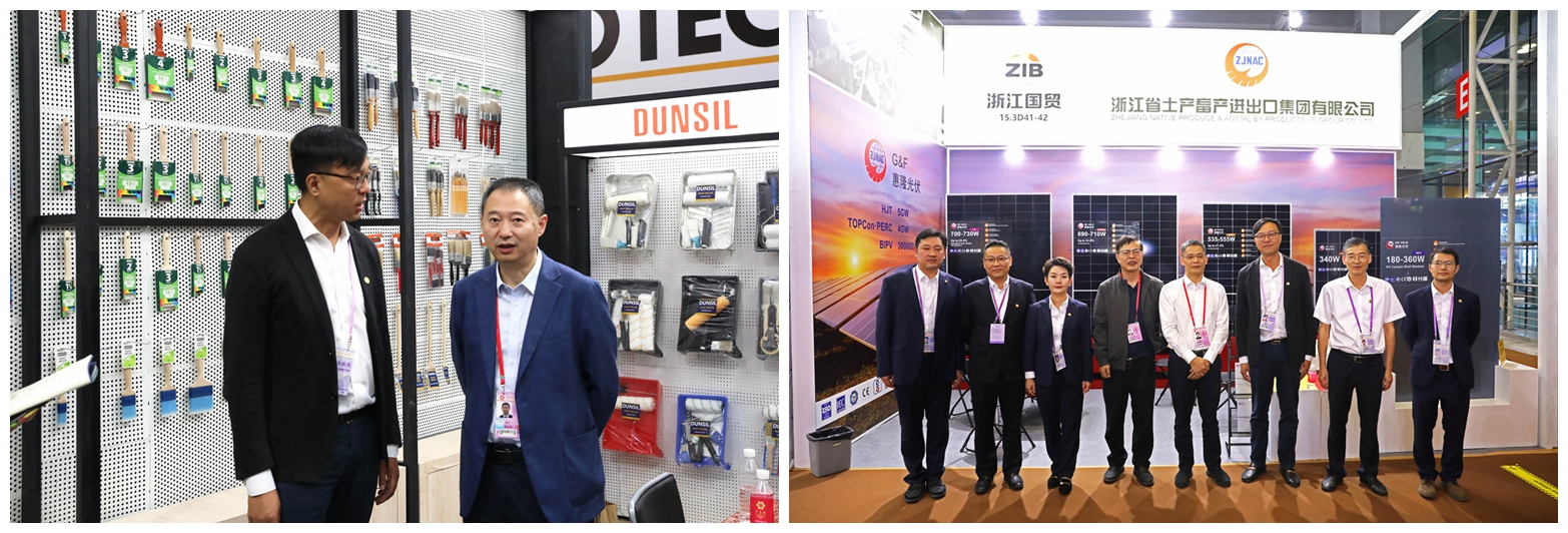10月15日開展當天,省商務(wù)廳副廳長陳志成,省國貿(mào)集團黨委書記、董事長高秉學(xué),黨委委員、副總經(jīng)理張勇等先后視察公司展位,詳細了解公司業(yè)務(wù)經(jīng)營情況,鼓勵參展人員借助展會主動適應(yīng)行業(yè)新變化、鍛造從點到鏈的能力、優(yōu)化升級新產(chǎn)品,進一步穩(wěn)定外貿(mào)基本盤、開拓雙循環(huán),推動傳統(tǒng)外貿(mào)轉(zhuǎn)型高質(zhì)量發(fā)展。