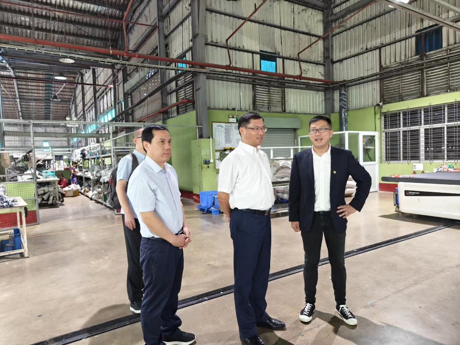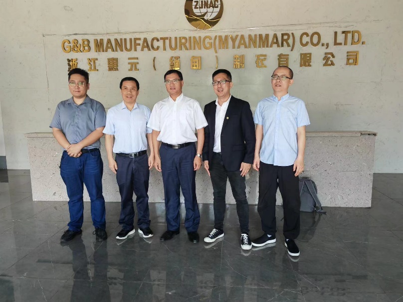 12月9日,中國紡織品進(jìn)出口商會(huì)會(huì)長曹甲昌到公司惠元(緬甸)制衣工廠走訪調(diào)研,省商務(wù)廳外貿(mào)發(fā)展處副處長王舒立,緬甸工廠負(fù)責(zé)人等陪同調(diào)研。